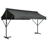 Avec un cadre en acier enduit de poudre durable et un revetement en polyester resistant aux intemperies, cet auvent peut etre erige sur n'importe quelle surface plate. De plus, il est tres robuste et durable. L'auvent peut etre ouvert et ferme en douceur.