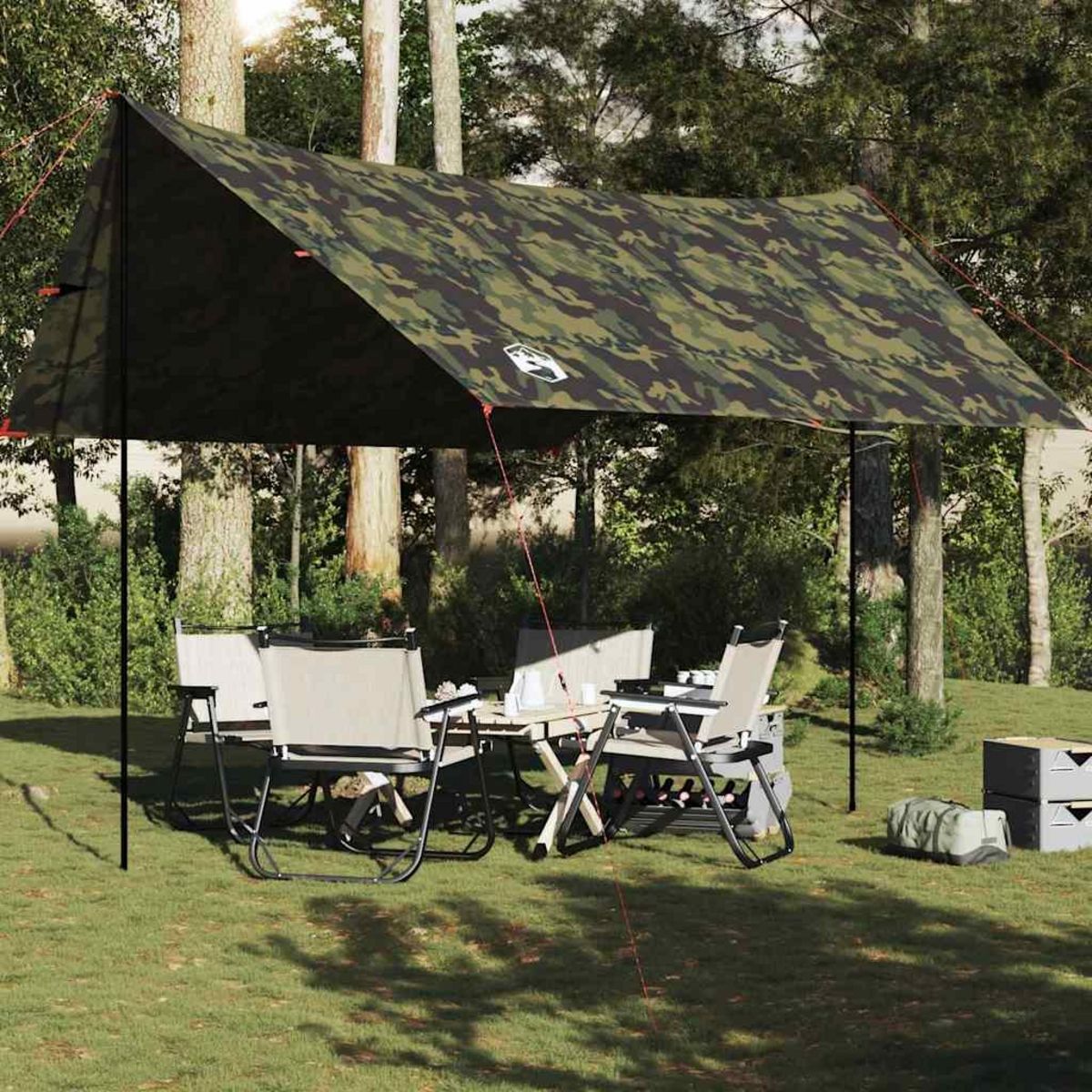 Cette bache de camping est un compagnon irremplaçable pour vos randonnees en plein air et en trekking. Materiau en taffetas durable : cette bache est fabriquee a partir d'un tissu en taffetas avec un revetement en PU, est impermeable et resistante au vent. De plus, les coutures etanches empechent ef