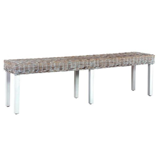 Banc 160 cm Blanc Rotin naturel kubu et bois de manguier massif
