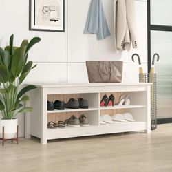 Banc a chaussures Blanc 110x38x45,5 cm Bois de pin massif