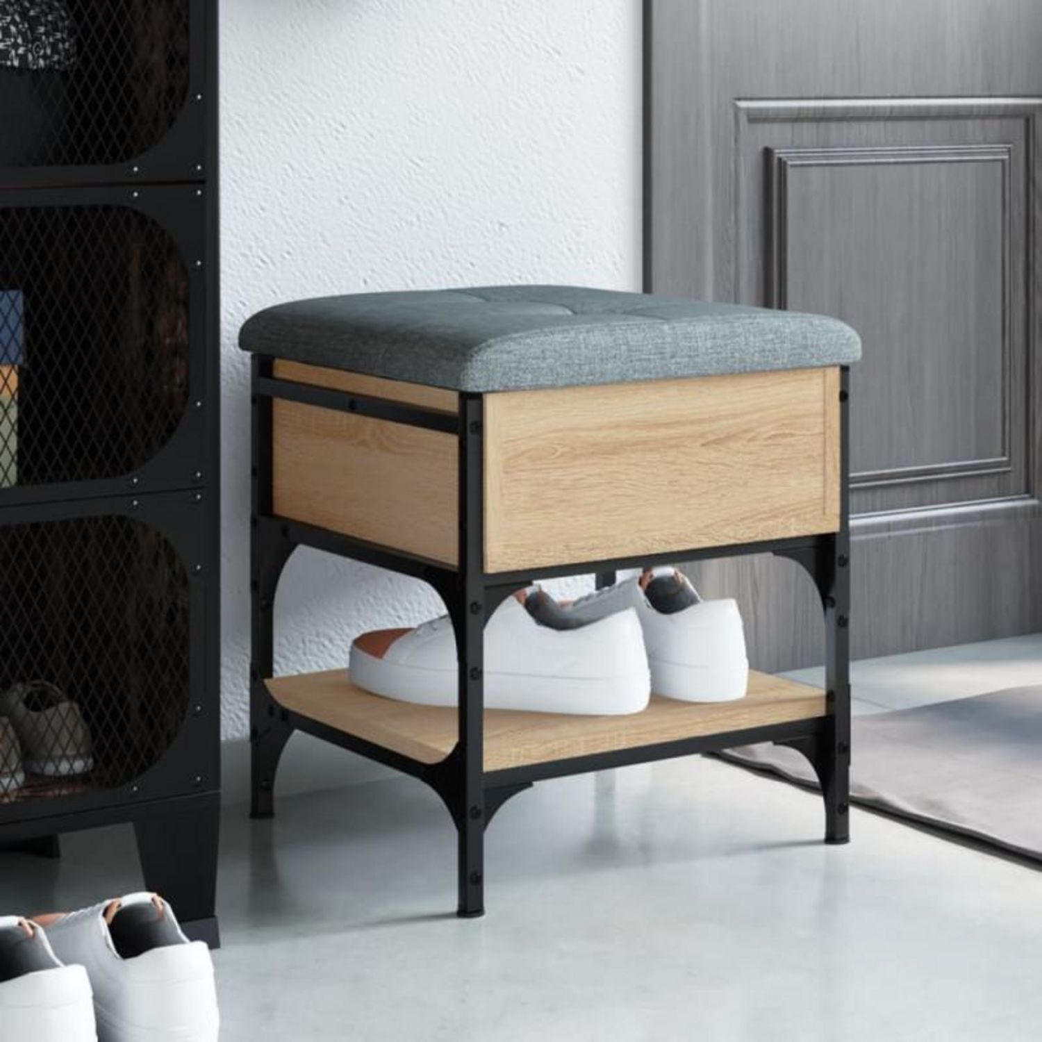 Banc à chaussures chêne sonoma 42x42x45 cm bois d ingénierie