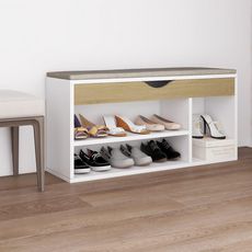 Banc a chaussures et coussin blanc chene sonoma bois ingenierie