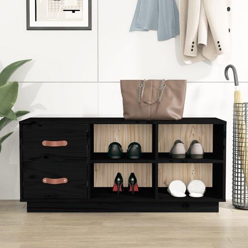 Banc a chaussures Noir 100x34x45 cm Bois de pin massif