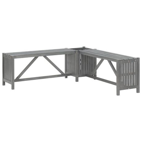 Banc d'angle de jardin et jardiniere 117 cm bois d'acacia gris