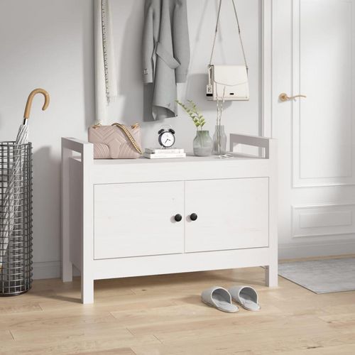Banc d'entree Blanc 80x40x60 cm Bois de pin massif