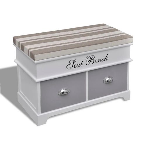 Banc d'entree et de rangement avec coussin gris 2 tiroirs Blanc
