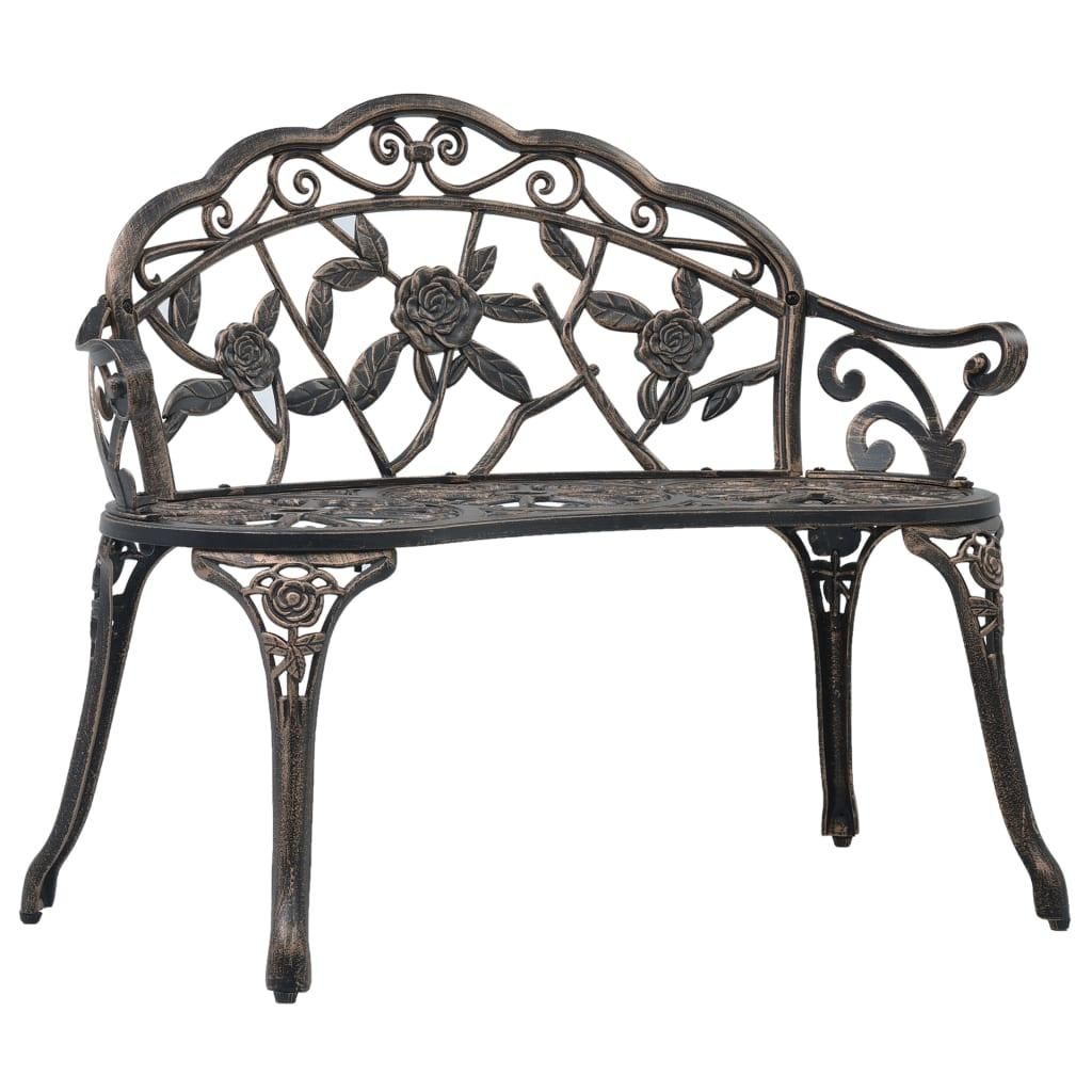 Fabrique en aluminium coule, ce banc de jardin est resistant aux intemperies et tres durable. Les pieds en fonte ajoutent de la robustesse. Le decor detaille et le motif floral charmant ajoutent de l'accent de alte a n'importe quel jardin ou espace exterieur. Ce banc de jardin peut accueillir 2 personnes.