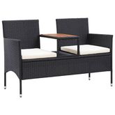 Banc de jardin 2places et table a the 143cm Resine tressee Noir
