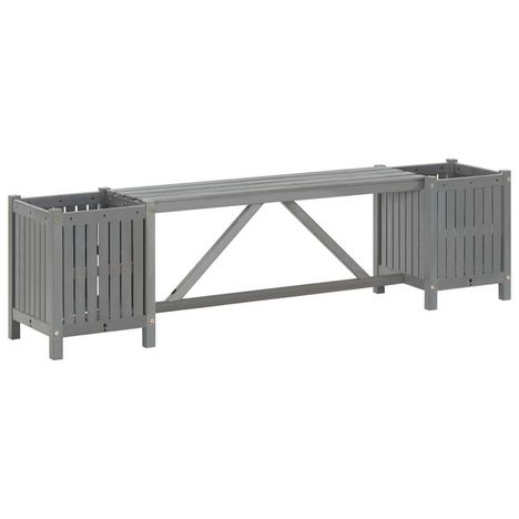 Banc de jardin avec 2 jardinieres 150 cm bois d'acacia gris