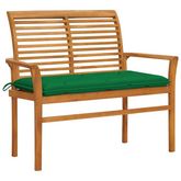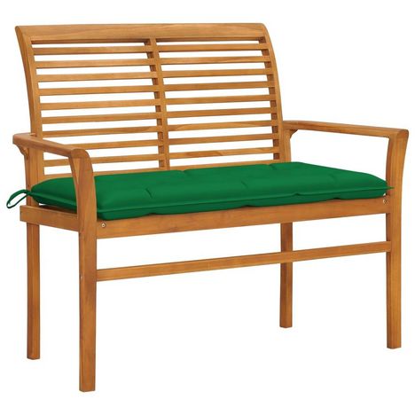 Banc de jardin avec coussin vert 112 cm Bois de teck massif