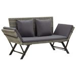 Banc de jardin avec coussins 176 cm Gris Resine tressee
