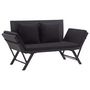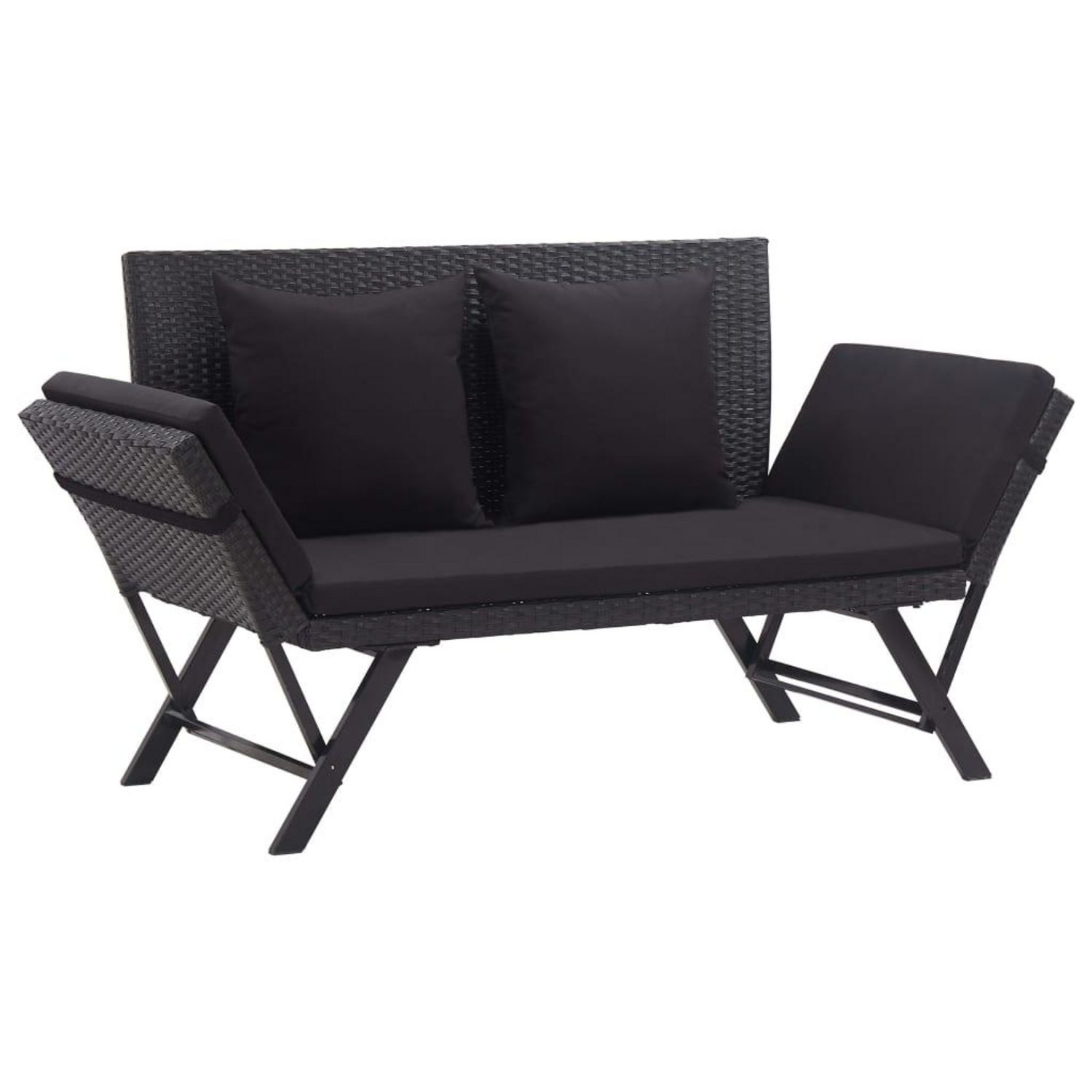 Fabrique en resine tressee resistante aux intemperies, ce banc de jardin est facile a nettoyer, resistant a l'usure et adapte a un usage quotidien. Il est dote d'un cadre en acier robuste, enduit de poudre, ce qui rend ce banc tres stable et durable. Il peut etre transforme en lit de jour et inversement rapidement et facilement grace a ses cotes reglables. Le coussin epaississement rembourre offre un confort optimal et un soutien supplementaire. De plus, grace a la conception zippee, la housse du coussin est amovible pour un lavage facile.