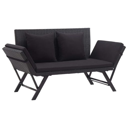 Banc de jardin avec coussins 176 cm Noir Resine tressee