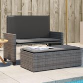 Banc de jardin avec coussins et repose-pied gris resine tressee
