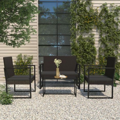 Banc de jardin avec coussins noir 106 cm resine tressee