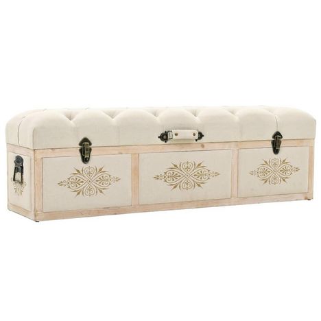 Banc de rangement 110 cm Creme Bois de sapin massif et tissu