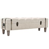 Ajoutez une touche vintage a votre decoration interieure avec notre banc de rangement. La boîte de rangement est en bois de sapin massif. Il est dote d'une assise rembourree dans un tissu moderne et de solides pieds en acier. Il y a suffisamment d'espace pour garder une multitude d'objets differents