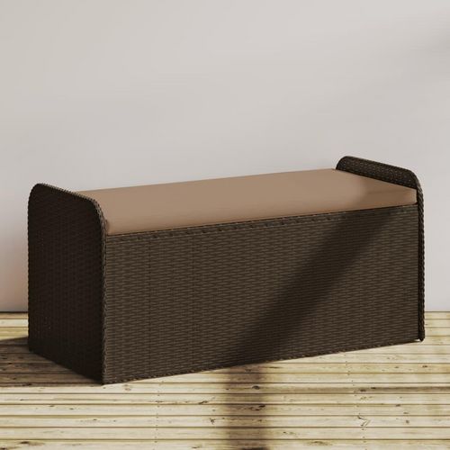 Banc de rangement et coussin marron 115x51x52 cm resine tressee