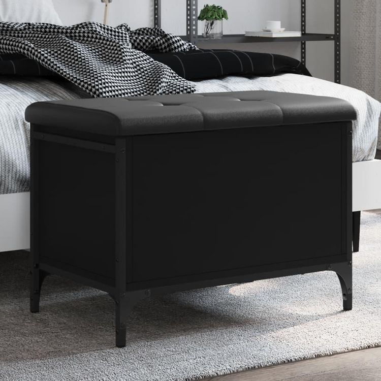 Banc de rangement noir 62x42x45 cm bois d'ingenierie