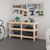 Ce banc de travail en bois est un supplement pratique a votre espace de vie. Bois massif de pin : le bois de pin massif est un materiau naturel magnifique. Le bois de pin a un grain droit et les nœuds donnent au materiau son aspect caracteristique et rustique.Grand espace de rangement : cette table