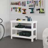 Ce banc de travail en bois est un supplement pratique a votre espace de vie.