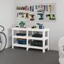 Ce banc de travail en bois est un supplement pratique a votre espace de vie. Bois massif de pin : le bois de pin massif est un materiau naturel magnifique. Le bois de pin a un grain droit et les nœuds donnent au materiau son aspect caracteristique et rustique.Grand espace de rangement : cette table