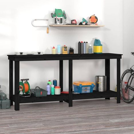 Banc de travail Noir 180x50x80 cm Bois de pin massif
