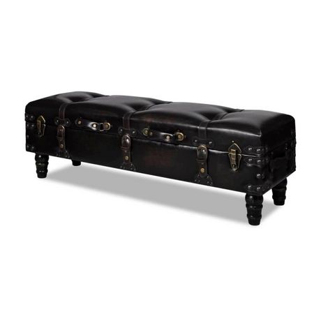 Ce banc de rangement au style elegant a la finition riche brun fonce est un choix ideal pour completer votre decoration interieure. Durable et confortable : le banc a un cadre en bois massif durable recouvert de similicuir de haute qualite, facile a nettoyer. Le dessus capitonne et le rembourrage do