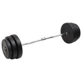 Cet ensemble de barre d'halteres polyvalent avec plaques est un choix parfait pour ceux qui recherchent des options d'entraînement variees.