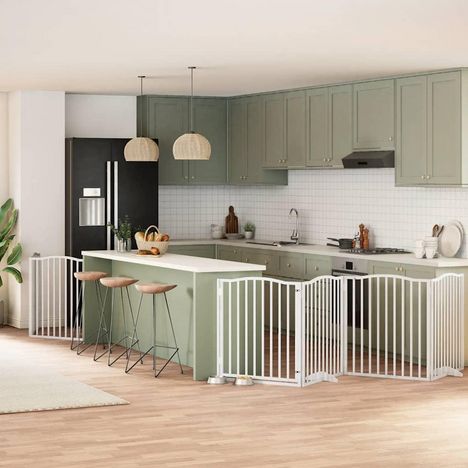 Barriere pour chien porte pliable 6panneaux blanc bois peuplier