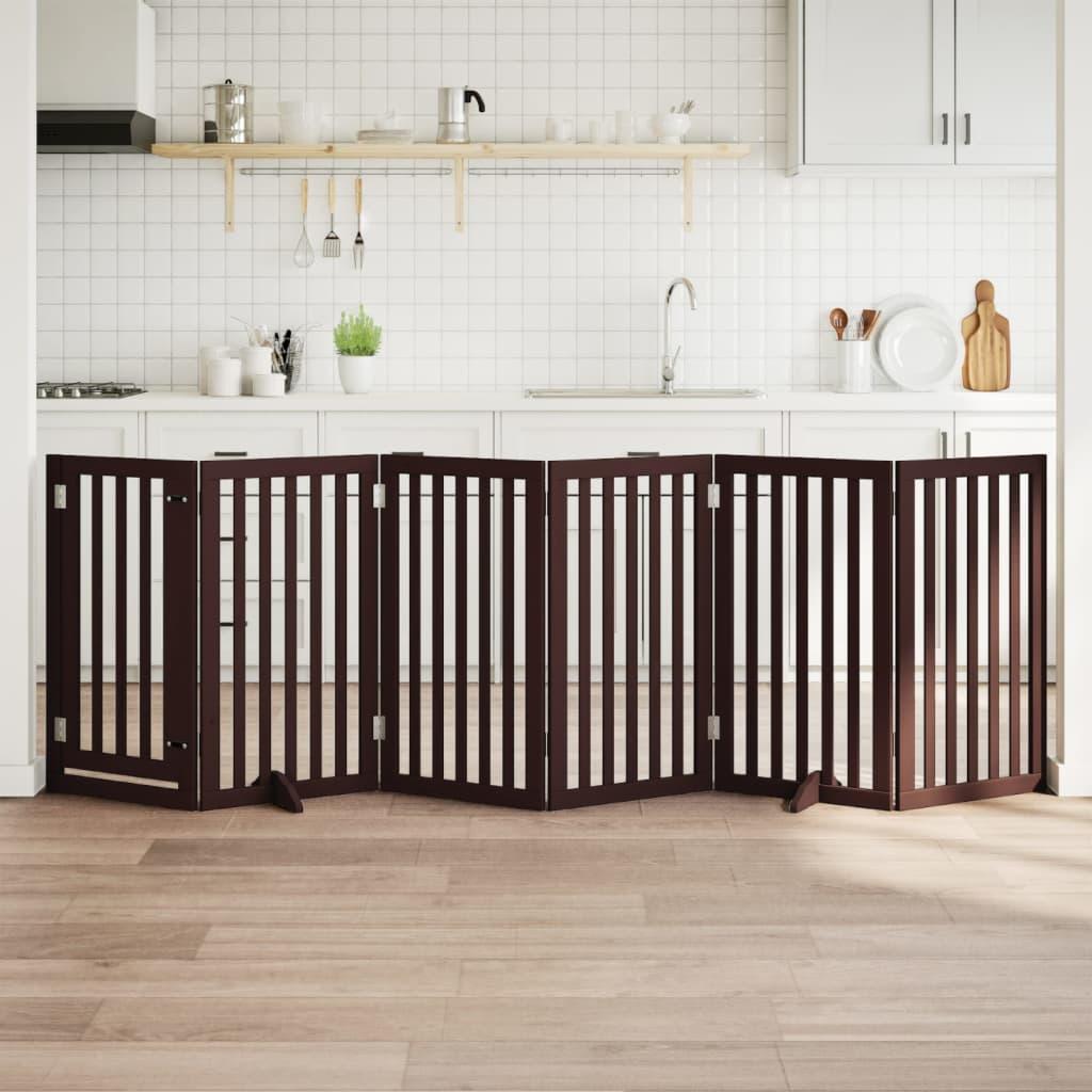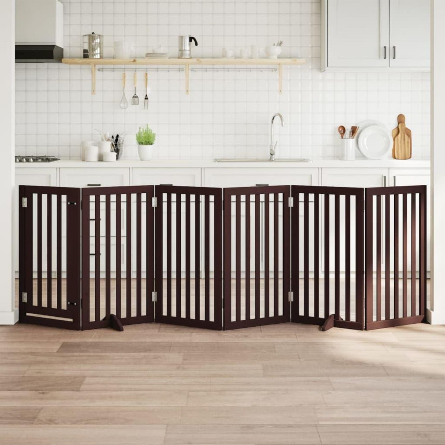 Barriere pour chiens avec porte 6 panneaux bois de peuplier