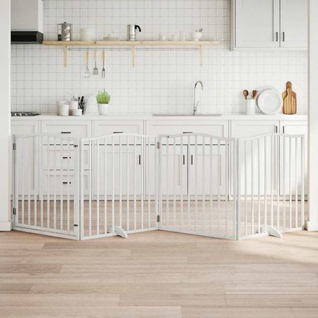 Barriere pour chiens et porte 4 panneaux blanc bois de peuplier