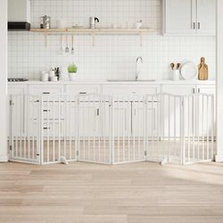 Barriere pour chiens et porte 6 panneaux blanc bois de peuplier