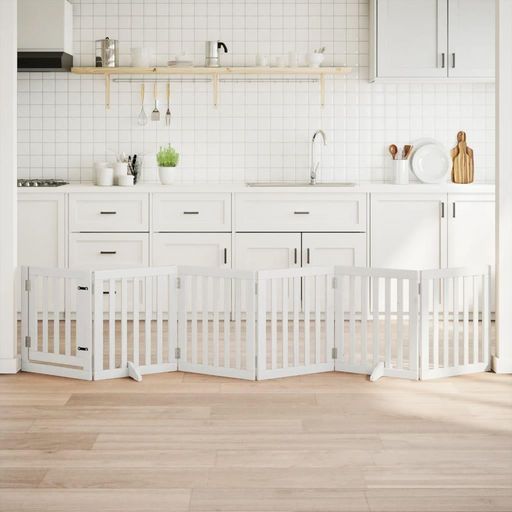 Barriere pour chiens et porte 6 panneaux blanc bois de peuplier