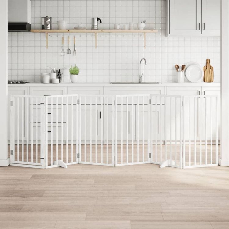 Barriere pour chiens et porte 6 panneaux blanc bois de peuplier