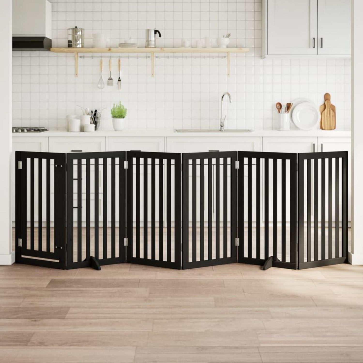 Barriere pour chiens et porte 6 panneaux noir bois de peuplier