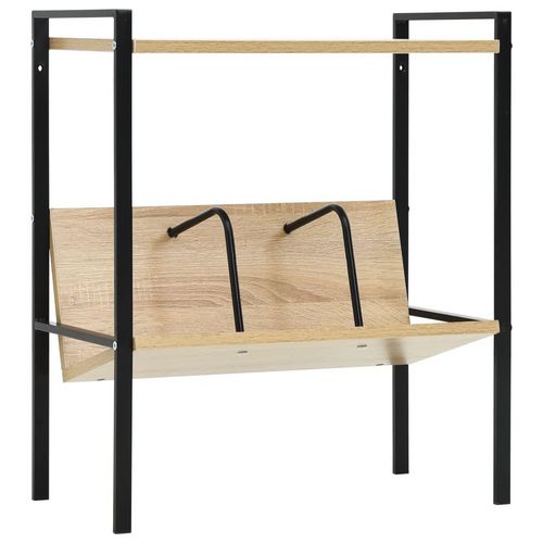 Bibliotheque 2 niveaux noir chene 52x28x59 cm bois d'ingenierie