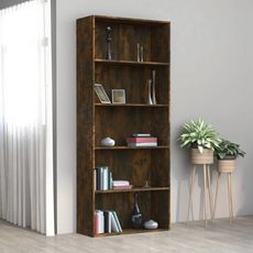 Bibliotheque 5 niveaux Chene fume 80x30x189cm Bois d'ingenierie