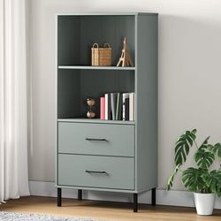 Bibliotheque a 2 tiroirs Gris 60x35x128,5 cm Bois massif OSLO
