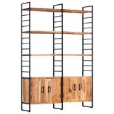 Ajoutez une touche de style industriel a votre maison ou bureau avec notre bibliotheque a 4 niveaux en bois. Cette bibliotheque avec 6 etageres et 4 portes offre une solution ideale pour stocker et afficher votre collection de livres, magazines, documents ou objets decoratifs tels que des cadres photo et des objets de collection.