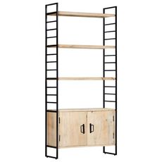 Ajoutez une touche de style industriel a votre maison ou bureau avec notre bibliotheque a 4 niveaux en bois. Cette bibliotheque avec 3 etageres et 2 portes offre une solution ideale pour stocker et afficher votre collection de livres, magazines, documents ou objets decoratifs tels que des cadres photo et des objets de collection.