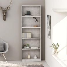 Bibliotheque a 5 niveaux Gris beton 60x24x175cm Bois ingenierie