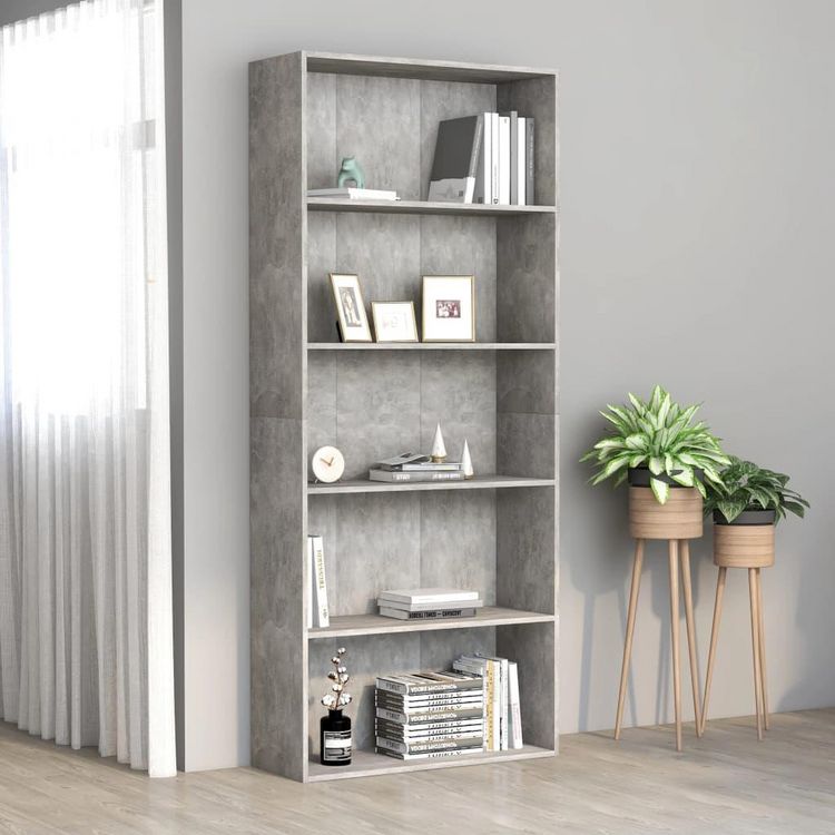 Bibliotheque a 5 niveaux Gris beton 80x30x189cm Bois ingenierie