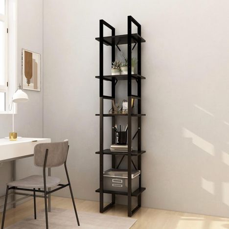 Bibliotheque a 5 niveaux Noir 40x30x175 cm Bois de pin