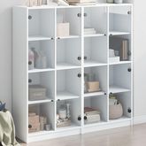 - Design pratique : gardez vos essentiels a l'abri de la poussiere en les cachant derriere les portes en verre. De plus, les poignees noires facilitent l'ouverture de la bibliotheque.