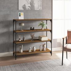 Bibliotheque Chene fume 100x33x100cm Bois d'ingenierie et acier
