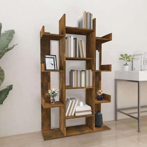 Bibliotheque Chene fume 86x25,5x140 cm Bois d'ingenierie