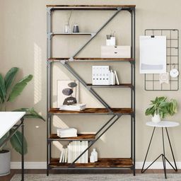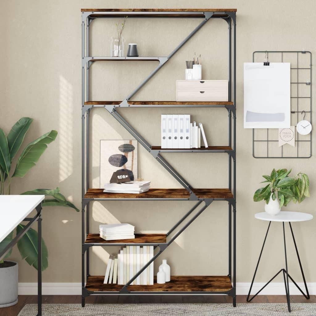 Bibliotheque chene fume 91x36x176 cm bois ingenierie et acier