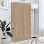 L'armoire est fabriquee en bois d'ingenierie de qualite, qui assure sa robustesse et sa durabilite. Conçue avec 4 compartiments spacieux et 2 portes, la bibliotheque offre un grand espace de rangement pour ranger et tenir a portee de main vos magazines, livres, DVD, appareils multimedias et autres objets de decoration. Comme une etagere polyvalente, le porte-livres est egalement une solution de rangement parfaite pour tout autre espace de vie. De plus, ce support de livre est facile a nettoyer avec un chiffon humide.