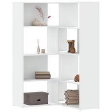 Bibliotheque d'angle a 4 niveaux blanc bois d'ingenierie